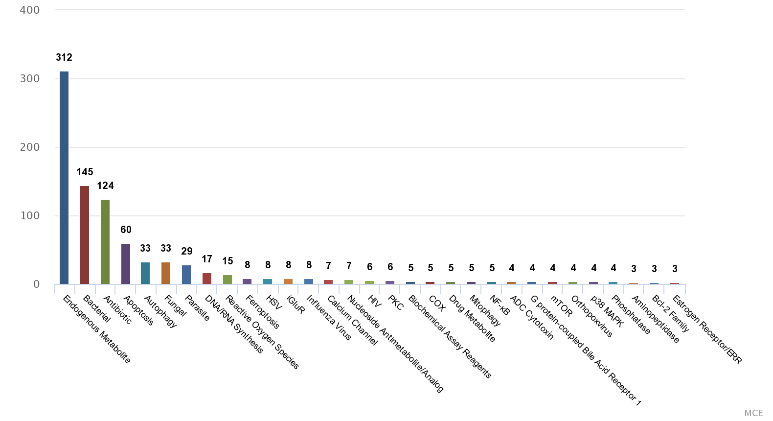 MCE provides a unique collection of 559 microbial metabolites, which is an important source of lead compounds and can be used for drug discovery.